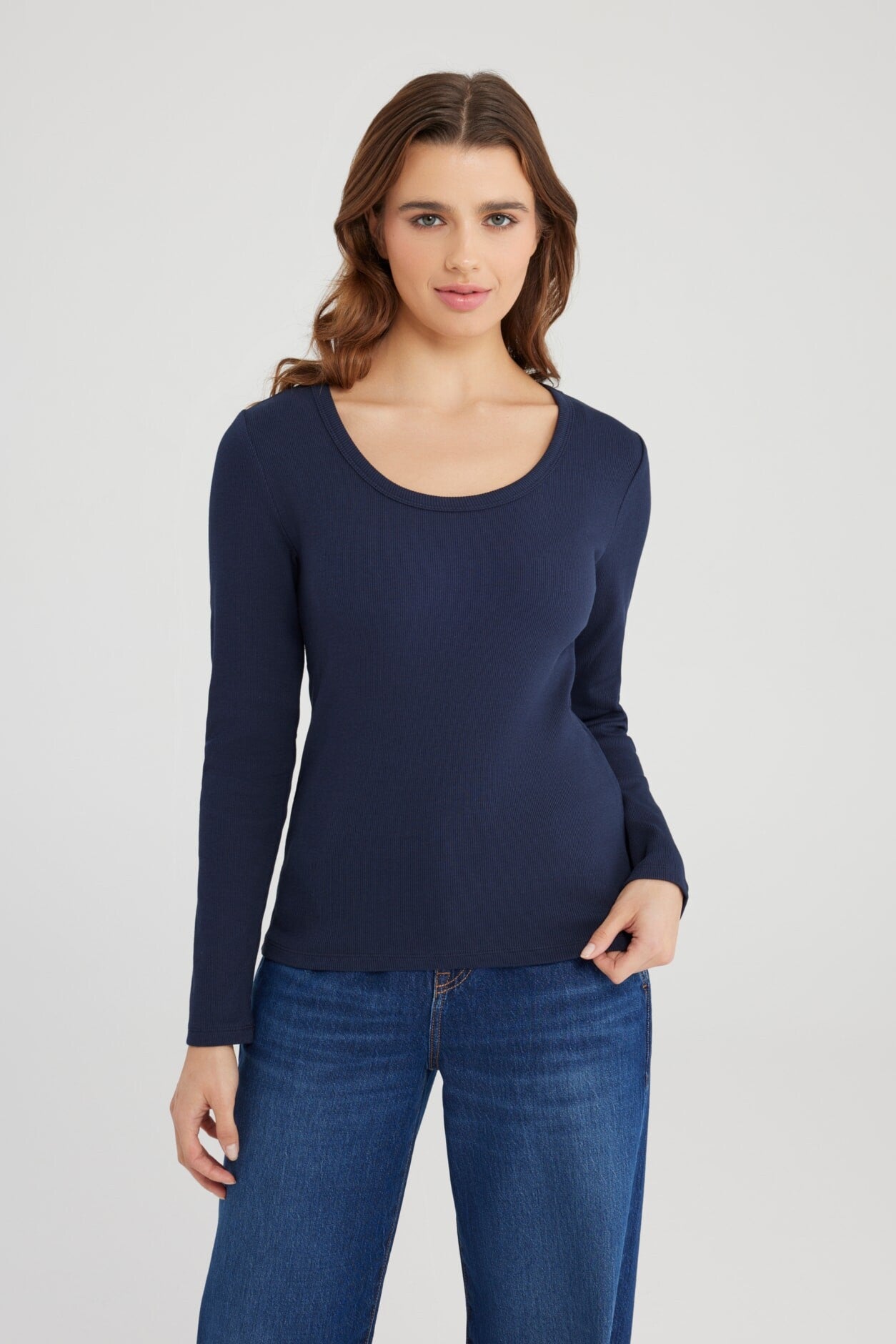 Basic shirt in het donkerblauw van COJ! Aansluitend modelronde hals