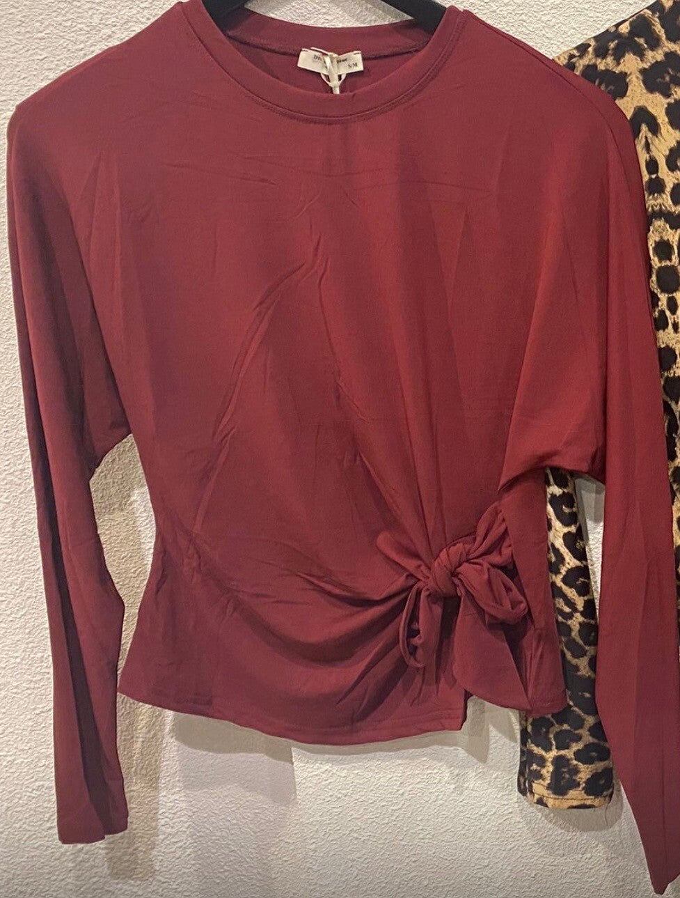 Mooie top Sali in Bordeaux rood met een knoop aanbrengen voorkant
