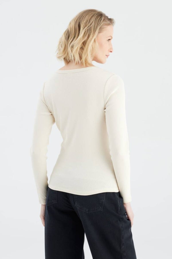 Basic shirt in het room wit van COJ! Aansluitend modelronde hals