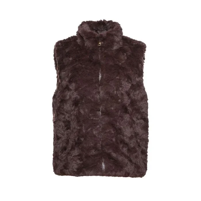 Prachtige fake fur bodywarmer met hoge kraag en sluit met een rits