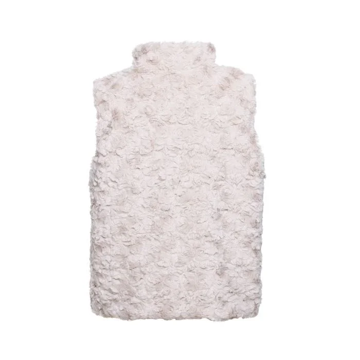 Prachtige fake fur bodywarmer met hoge kraag en sluit met een rits