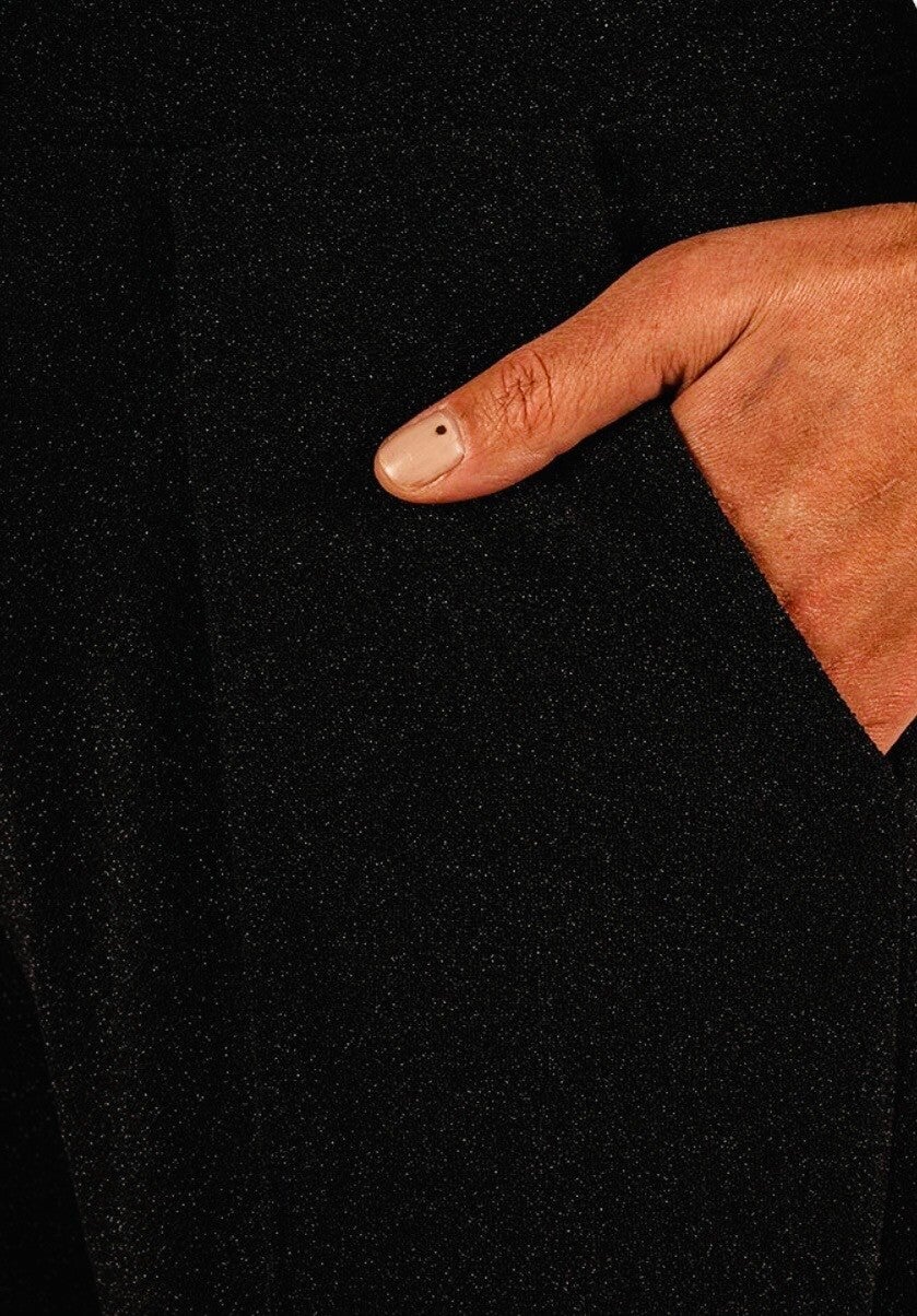 De broek is helemaal voorzien van glitters