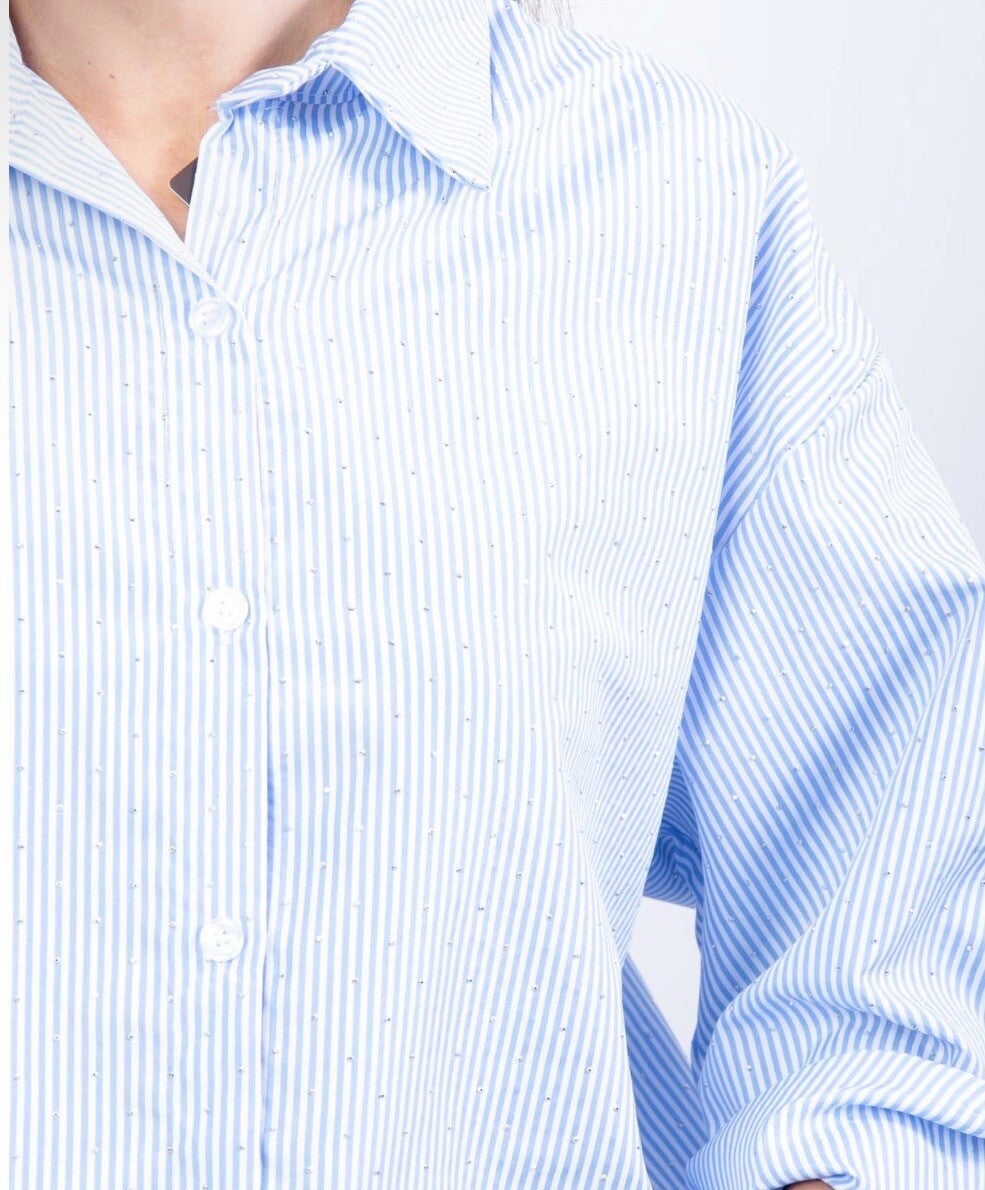 Basic streep blouse in blauw wit met glitters!