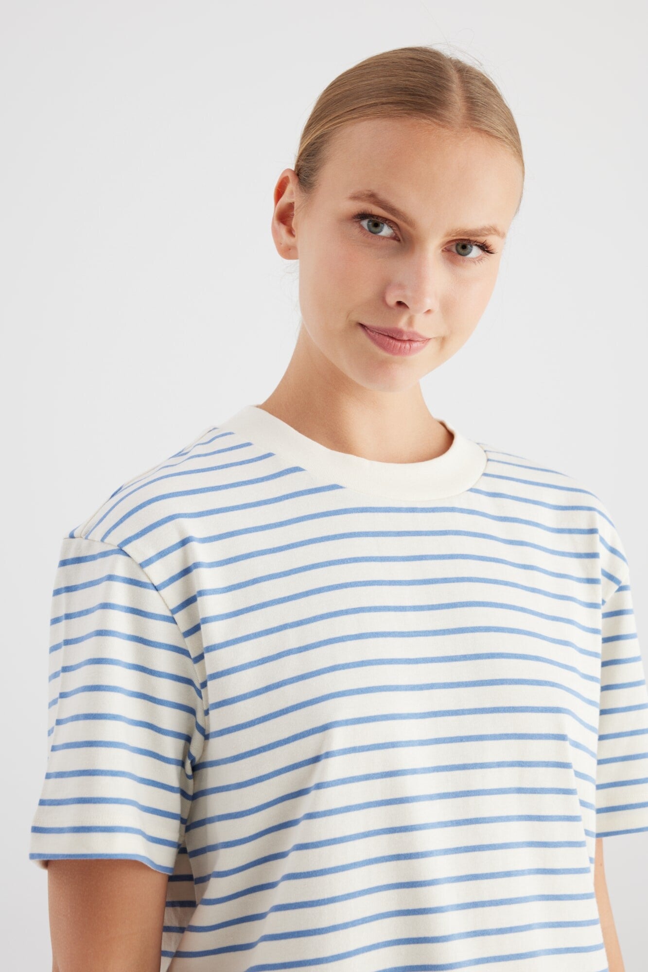 Dit super hippe shirtje van COJ is heerlijk zomers in de streep wit zacht blauw