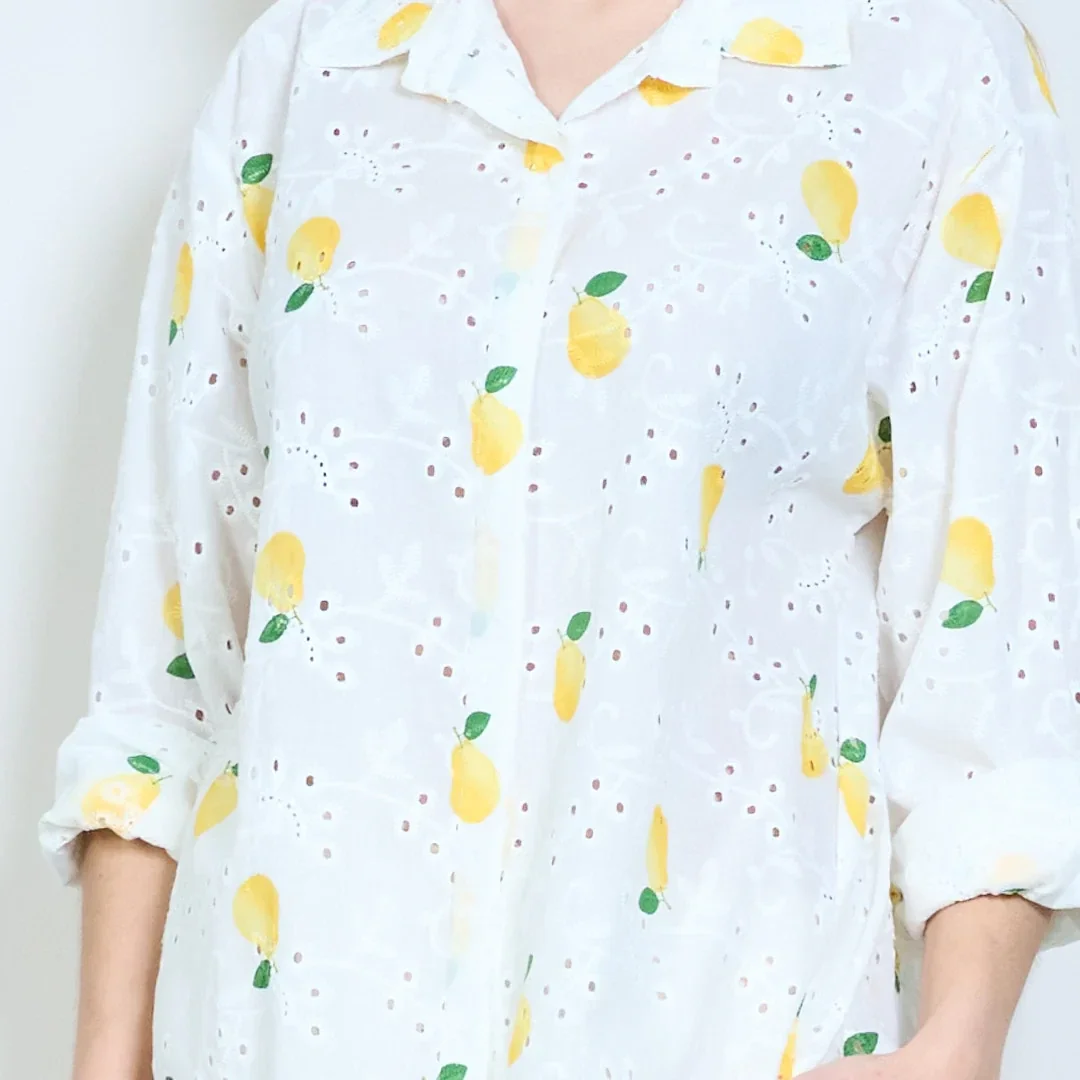 Deze zomerse blouse Lemon is oversized en geprint met limoenen