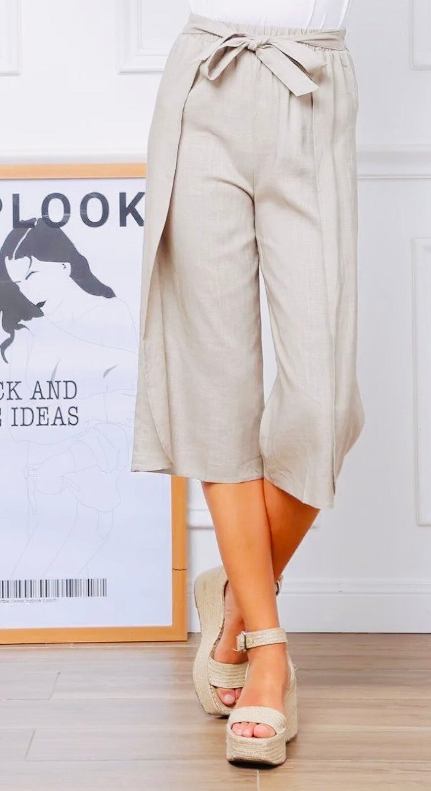 Basic knie pants in ecru! Elastiek en een band in de taille